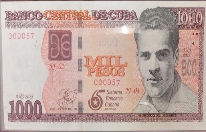 Con motivo del aniversario 65 de la nacionalización de la banca cubana, celebrado a lo largo de 2025 y cuyo punto central fue el 13 de octubre, Día del Trabajador Bancario, el Banco Central de Cuba puso en circulación una emisión especial del billete de 1000 pesos cubanos (CUP).