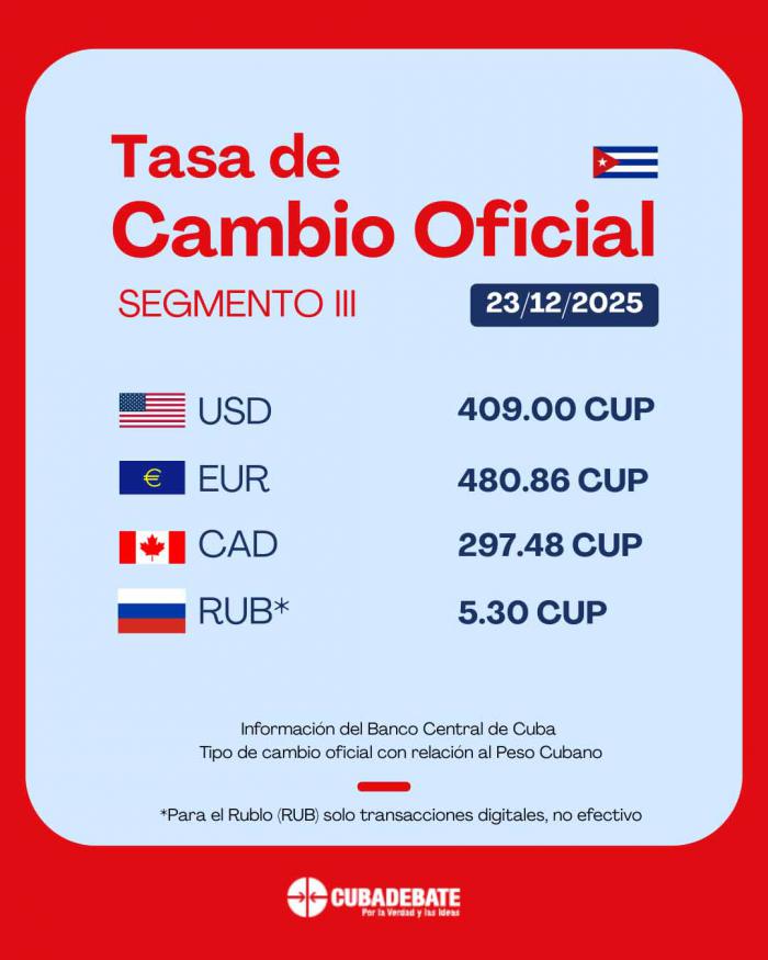 Tasa de cambio oficial del Banco Central de Cuba: 23 de diciembre de 2025