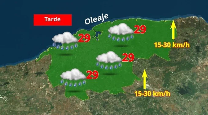 También alertó que en áreas de chubascos y tormentas eléctricas fuertes la velocidad de los vientos y la altura de las olas pueden ser superiores, incluso ocurrir eventos de tiempo severo como caída de granizos, tornados, etcétera.