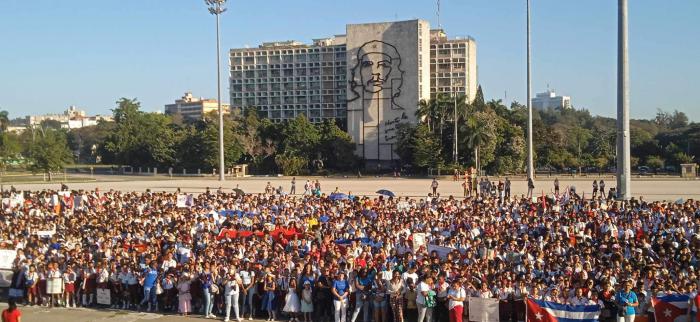 En la capitalina Plaza de la Revolución José Martí, como en otros espacios de todo el país, la más joven generación de cubanos rindió este sábado homenaje al hombre de la Edad de Oro en el aniversario 171 de su natalicio.