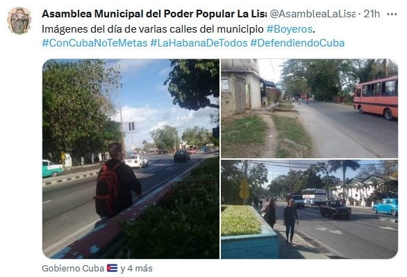 Igualmente a través de sus cuentas oficiales, varias Asambleas Municipales del Poder Popular en la provincia se hicieron eco del mensaje de la Gobernadora y publicaron fotos que muestran la tranquilidad ciudadana que reina en el municipio capitalino. La Directora de Comunicación del Gobierno habanero, Aly Martínez Mora, realizó un llamado a la población, en general, a no dejarse llevar por noticias falsas y mantenerse informados siempre por las fuentes oficiales.