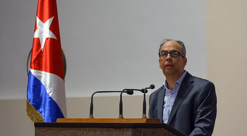 Rogelio Polanco Fuentes, miembro del Secretariado del Comité Central del Partido Comunista de Cuba y jefe de su Departamento Ideológico, durante su intervención en el Segundo Encuentro Internacional de Publicaciones Teóricas de Izquierda. Foto: Abel Padrón Padilla/ Cubadebate