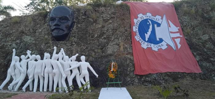 Una ofrenda floral a nombre de los trabajadores cubanos fue depositada en tributo a Lenin al pie de la Colina, donde se erige una fotografía esculpida en piedra del líder ruso.