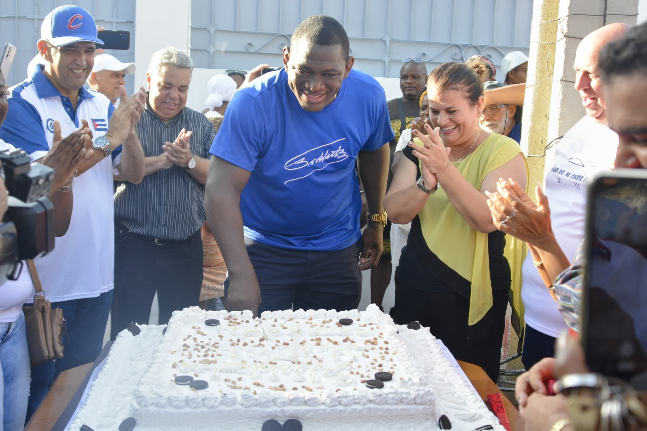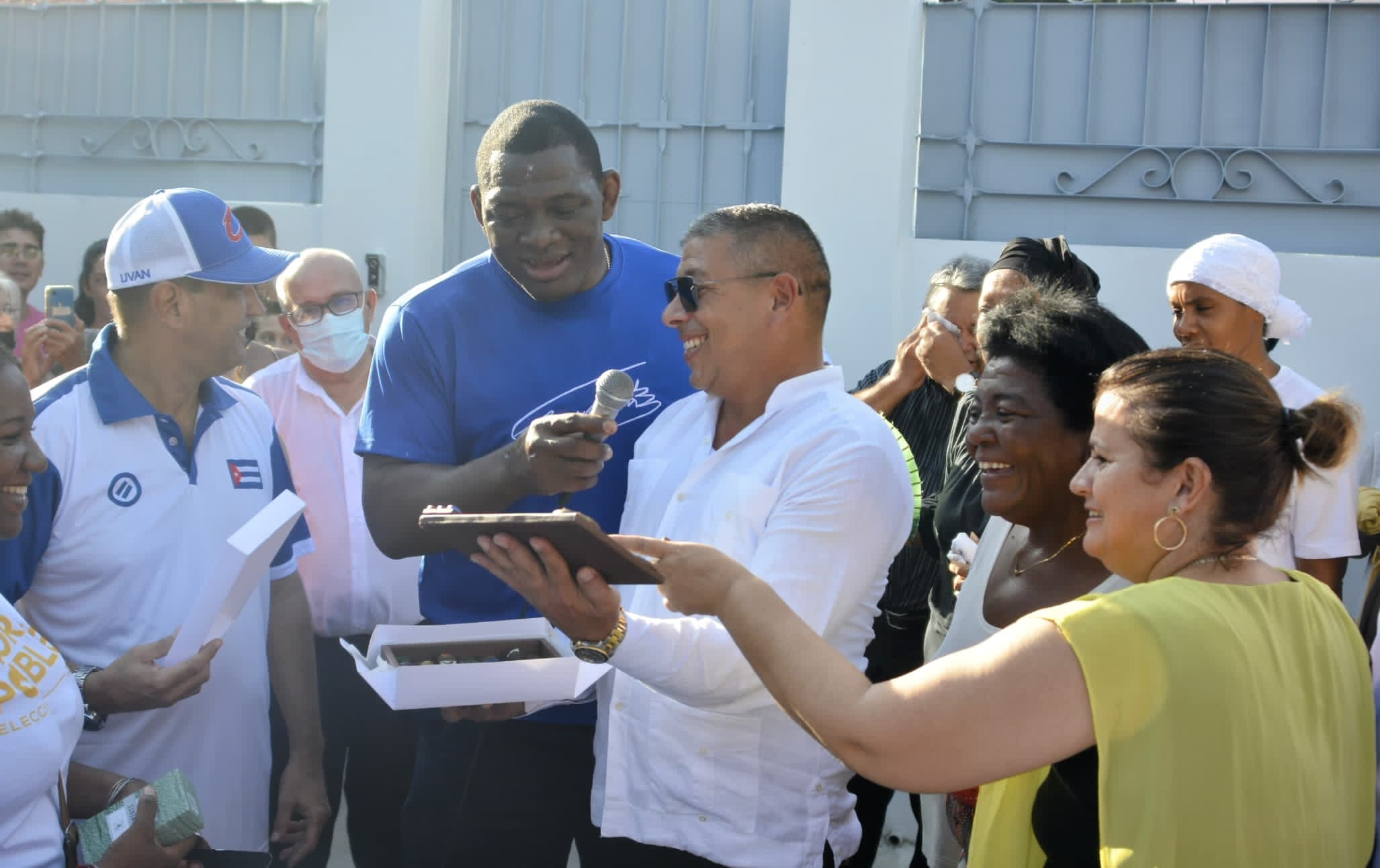 Autoridades de La Habana visitan al pentacampeón olímpico Mijaín López Núñez.