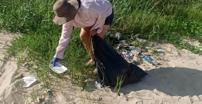En el Rincón de Guanabo, donde curiosamente se acumulaba una cantidad de plástico superior a la Rotonda, atribuida a lo que trae el mar, había una lomita de desechos recogidos y apilados. Resulta que Gloria García y sus dos hijas, de Marianao, de visita en la playa, antes de bañarse en el mar, decidieron espontáneamente dedicarle un tiempo a sanear parte del área.