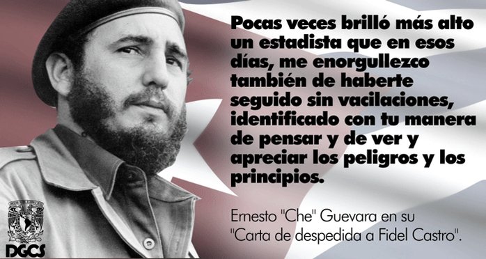 Sépase que lo hago con una mezcla de alegría y dolor: aquí dejo lo más puro de mis esperanzas de constructor y lo más querido entre mis seres queridos... Y dejo un pueblo que me admitió como un hijo; eso lacera una parte de mi espíritu. En los nuevos campos de batalla llevaré la fe que me inculcaste, el espíritu revolucionario de mi pueblo, la sensación de cumplir con el más sagrado de los deberes: luchar contra el imperialismo dondequiera que esté: esto reconforta y cura con creces cualquier desgarradura. “