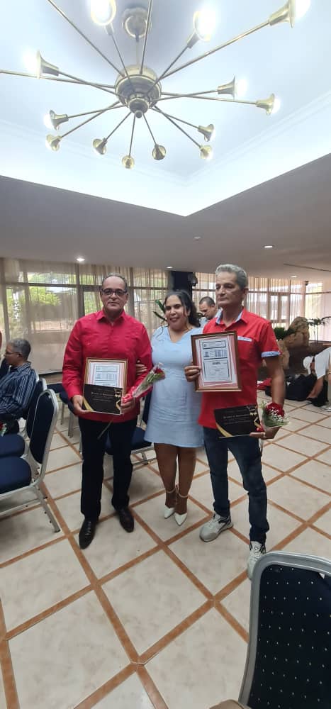 Este reconocimiento lo recibimos con la presencia del Ministro de Ciencia, Tecnología y Medio Ambiente, el presidente nacional de la ANIR, la secretaria general del Sindicato Nacional de Trabajadores de la Educación, la Ciencia y el Deporte, quienes, junto a la Dra. C. Cira Piñeiro, Viceministra Primera del MINED, compartieron nuestra modesta contribución científica.