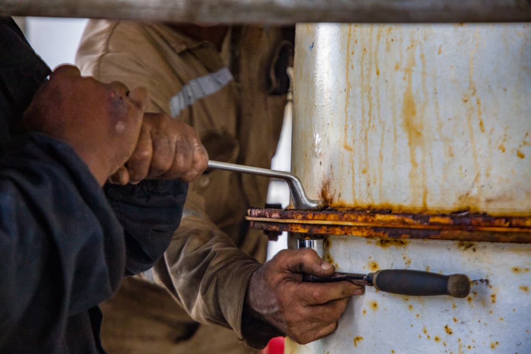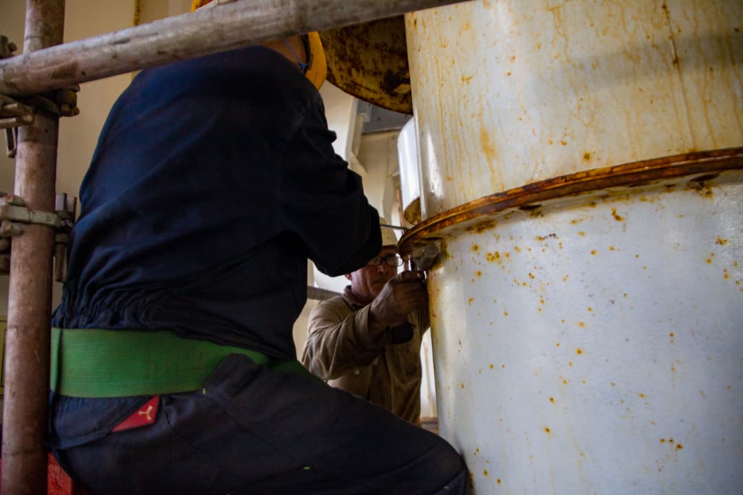 La primera etapa consiste en una evaluación exhaustiva realizada a flote. En esta, los técnicos especializados se dedican a diagnosticar, revisar e inspeccionar todos los mecanismos y sistemas del buque (desde las comunicaciones hasta la climatización) para identificar las condiciones iniciales y planificar las intervenciones necesarias.