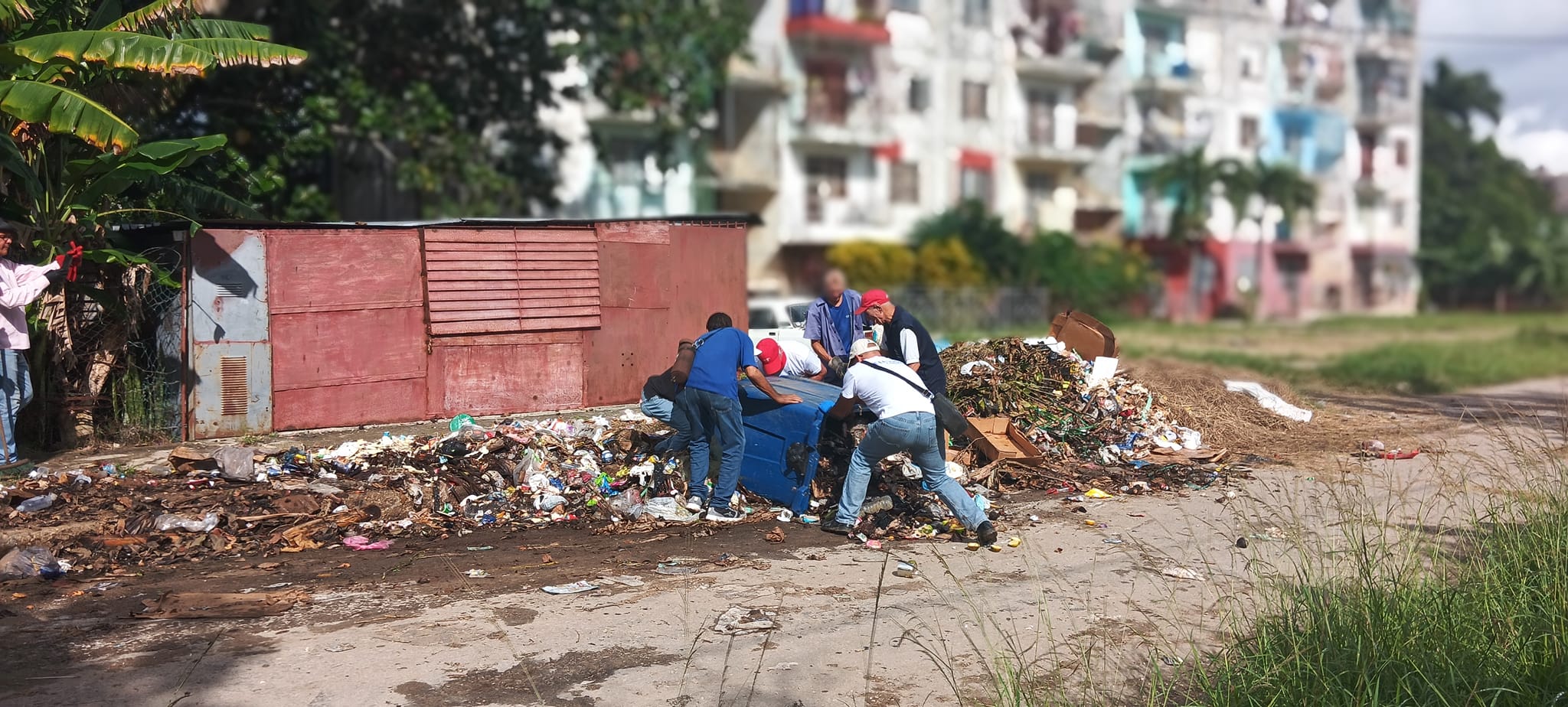 En la Esquina de Belascoain y San Miguel, la Empresa Municipal de Comunales con la ayuda de las fuerzas de la OSDE GEICON eliminaron un cúmulo de desechos sólidos en la circunscripción 50 del Consejo Popular Dragones.