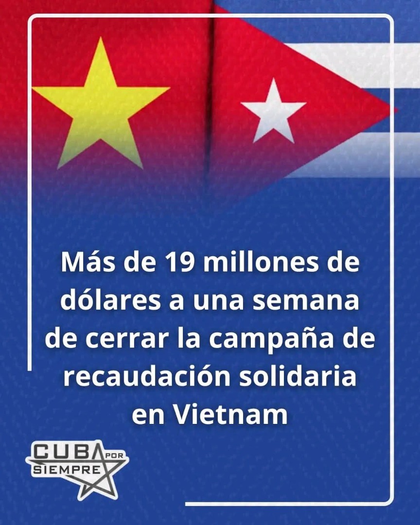 En su página de Facebook la entidad señaló que “el número es de más de dos millones de donantes, pero el corazón es de millones de vietnamitas, porque en una transferencia a veces está la mano de agencias, organizaciones y empresas, en las cuales muchas personas contribuyen con una pequeña parte, enviando amor al pueblo cubano”.
