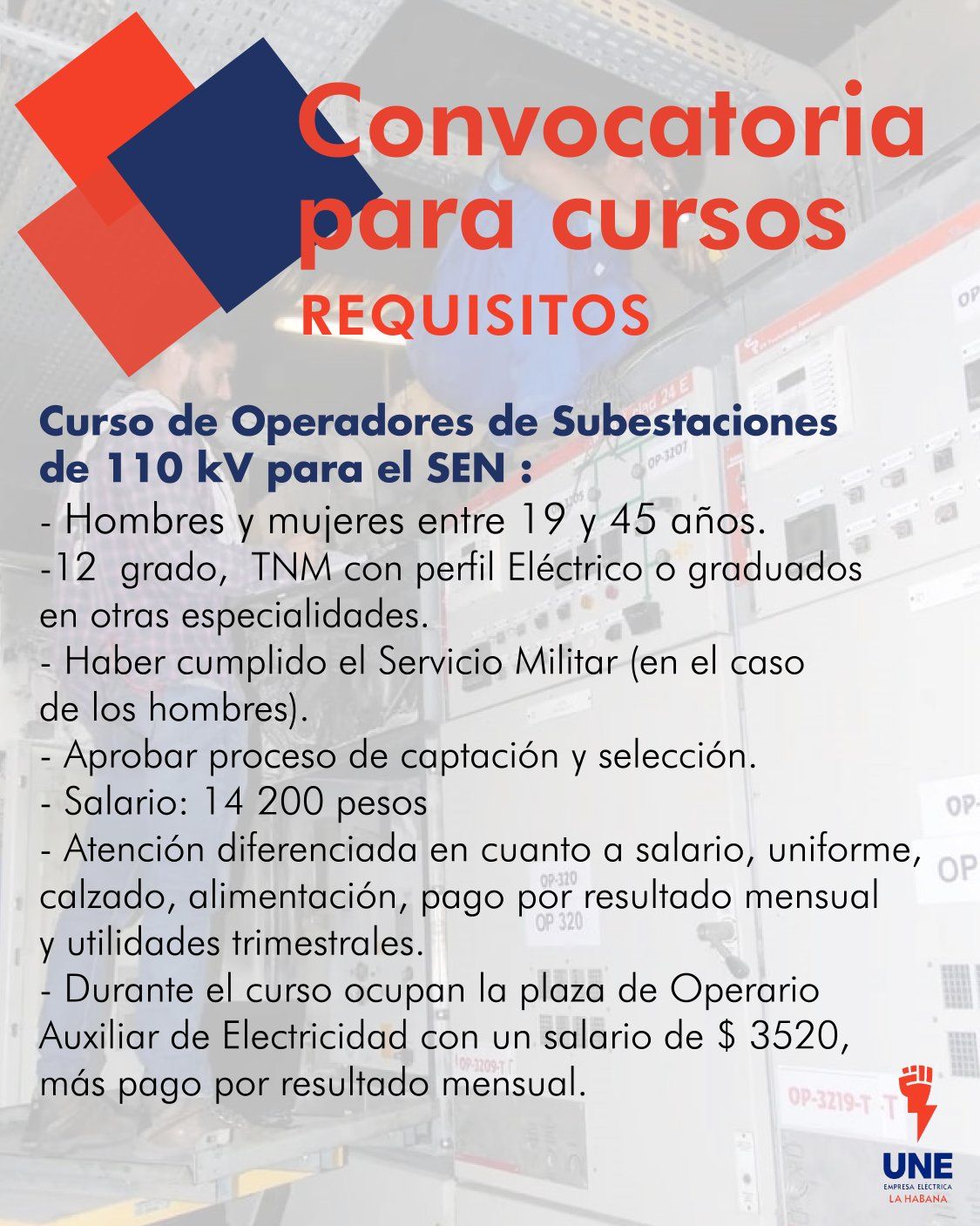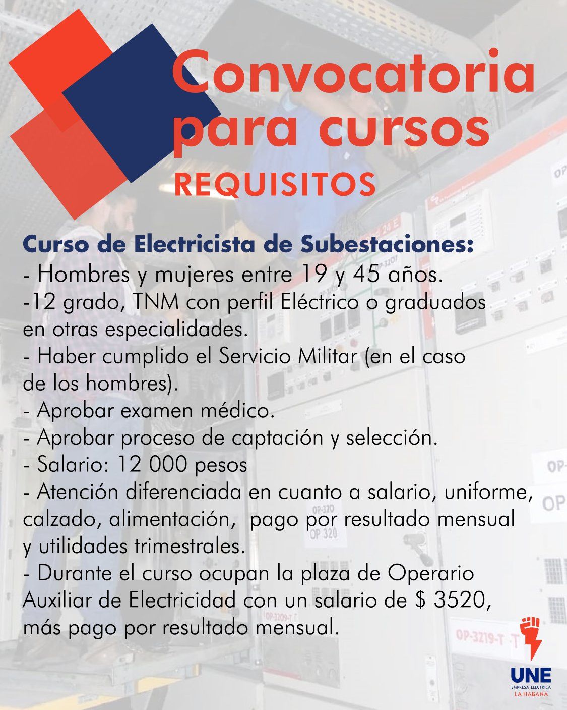 Empresa Eléctrica de La Habana lanza convocatoria a cursos para ofertas de empleo