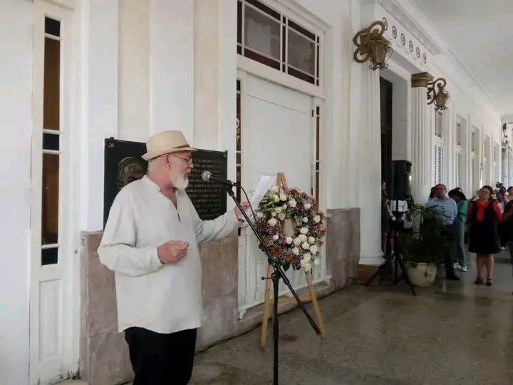 Posteriormente, Yoel Cordoví Núñez, Jefe del Departamento de Estudios Coloniales del Instituto de Historia de Cuba, se dirigió a los presentes para reflexionar sobre el trágico suceso. En sus palabras, Cordoví Núñez recordó no solo la inocencia y la injusticia del fusilamiento de los jóvenes estudiantes, sino que también rindió tributo a aquellas personas que, como el capitán Estévanez, tuvieron el valor de defenderlos y oponerse a la barbarie.