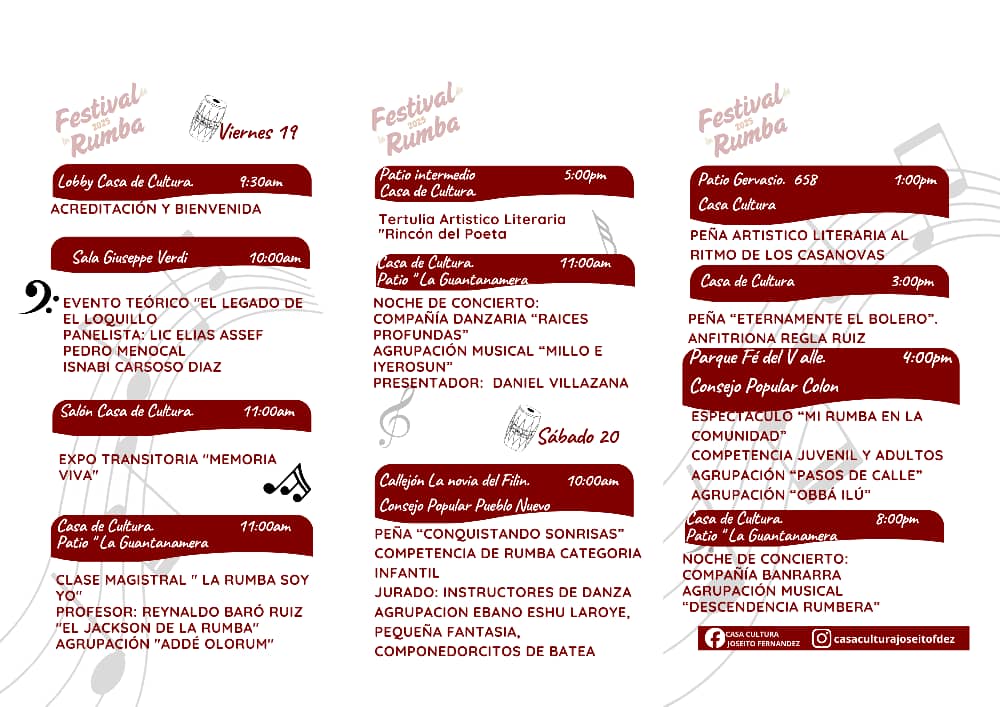 En el municipio Centro Habana se celebrará una vez más con el auténtico sonido de la rumba cubana. Del 19 al 21 de diciembre, la Casa de Cultura Joseíto Fernández acogerá el Festival de la Rumba Chano Pozo 2025, bajo la dirección artística de Javier Alba Horta y auspiciado por la prestigiosa institución cultural.