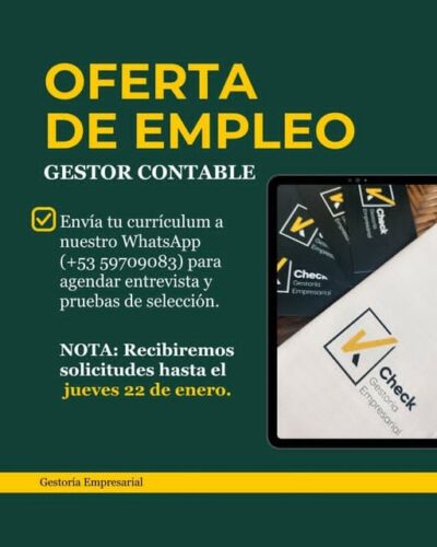 Check Gestoría Empresarial busca un(a) gestor(a) contable para unirse al equipo.