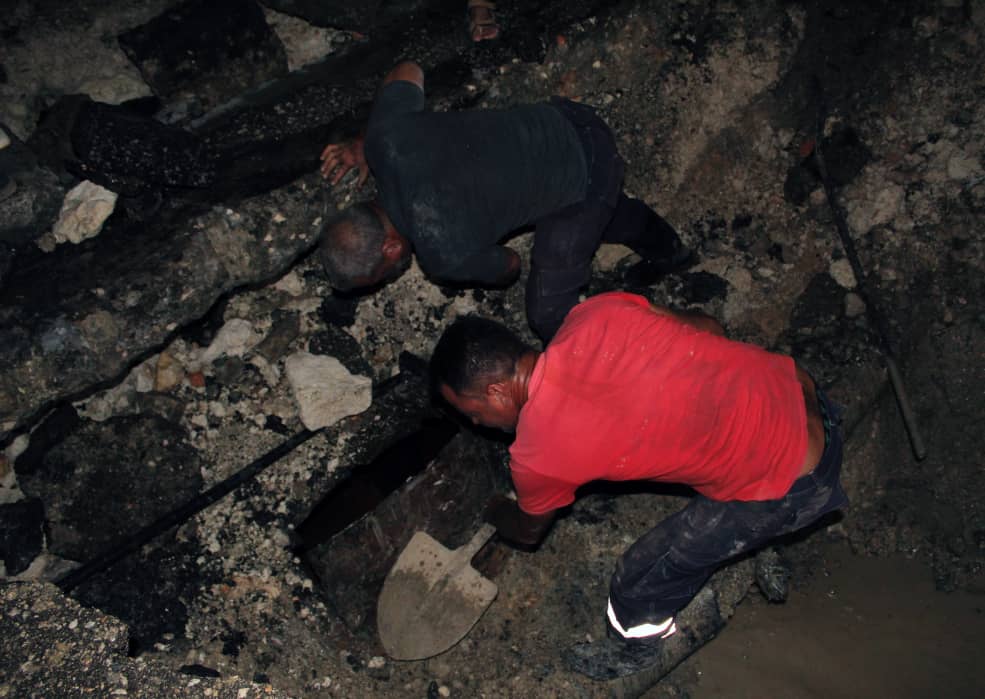 La avería ocurrió en un salidero pendiente de solución. A pesar de la falta de electricidad en el área, los operarios laboran intensamente para restablecer el servicio en el plazo más breve posible