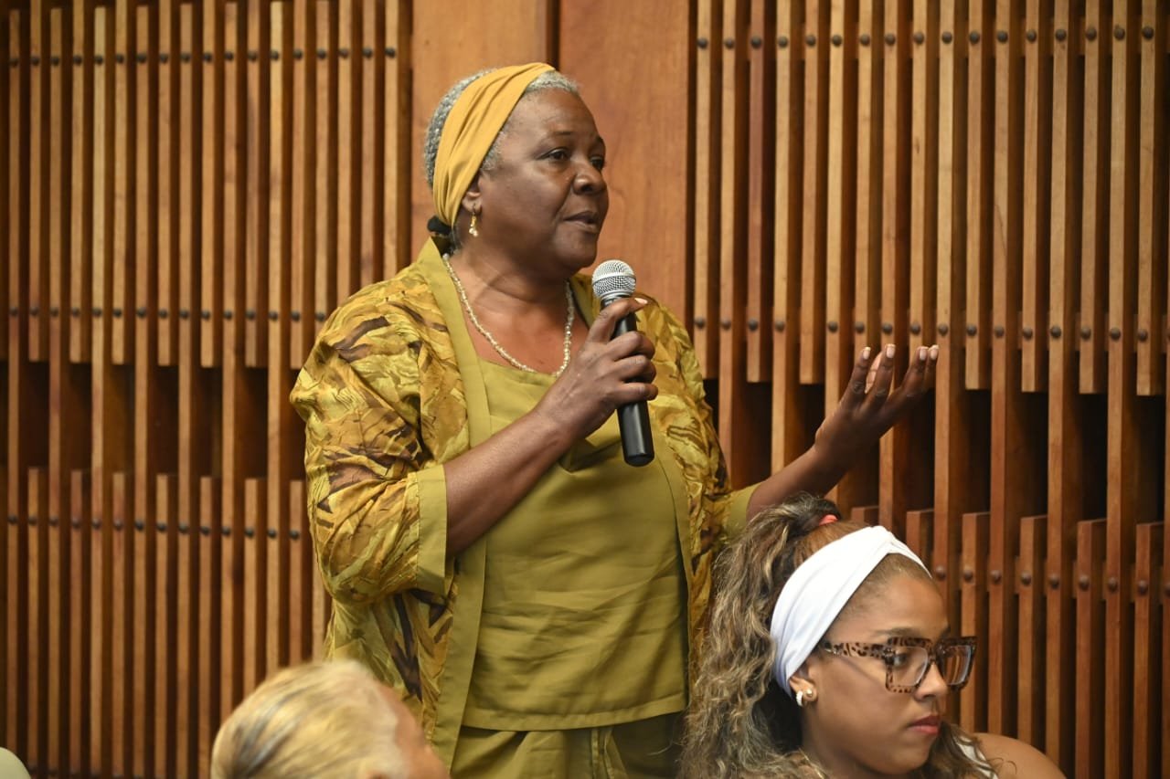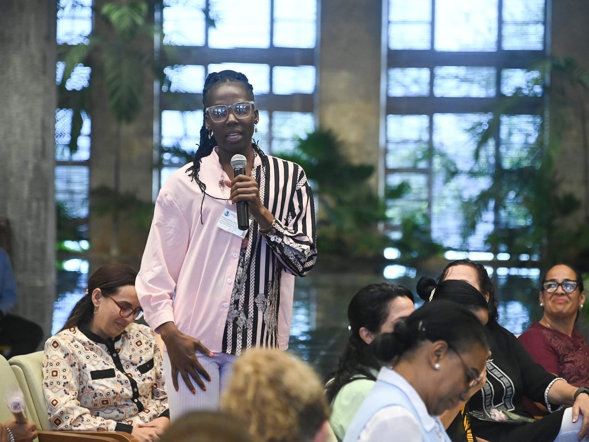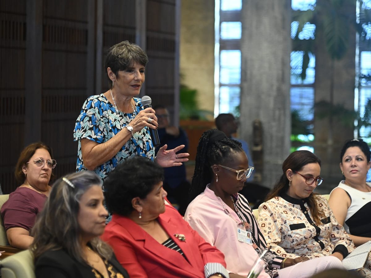 María Clara Castro Cruz, dirigente de un bloque de la FMC en Cojímar, compartió las iniciativas que allí se realizan a pesar de las limitaciones y que son muestra del tremendo potencial que tienen las mujeres en los barrios si se ponen al frente de las tareas, por muy pequeñas o complejas que sean.