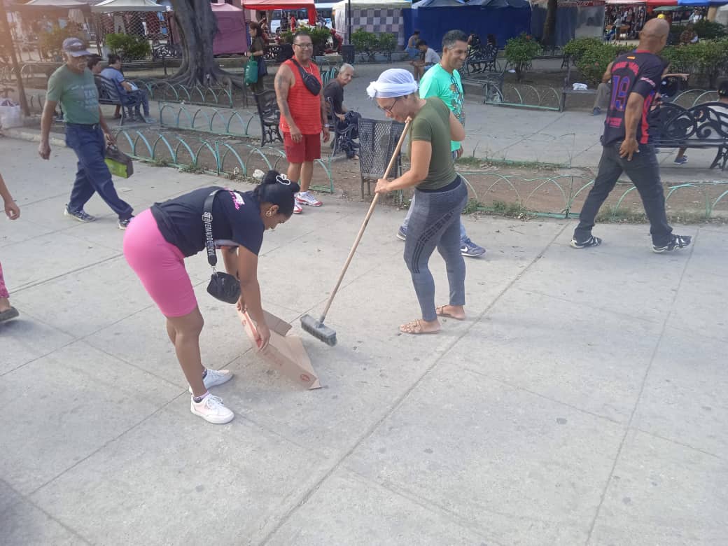 A las labores se sumaron también trabajadores de la Dirección Municipal de Cultura de Centro Habana, quienes realizaron tareas de higienización en el emblemático parque Sergio González "El Curita", espacio de gran valor simbólico para la comunidad.