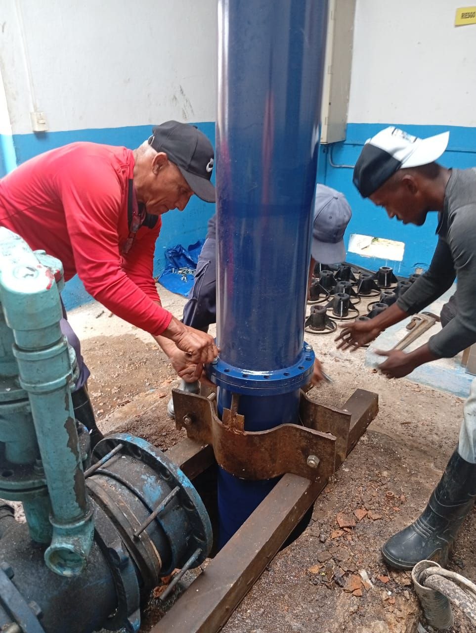 La Brigada de Electromecánica continúa con el montaje del equipo 6 de la fuente de abasto Cosculluela, equipo nuevo que aumentará el rendimiento de esta fuente para los municipios del sistema Oeste.