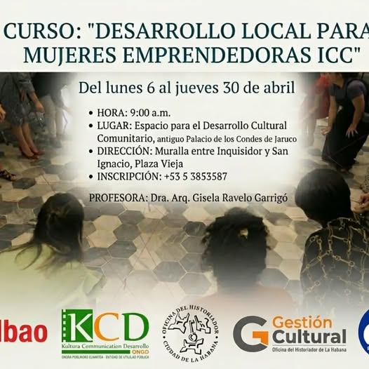 Del 6 al 30 de abril, en el corazón de La Habana Vieja, se desarrollará un curso dirigido por la Dra. Arq. Gisela Ravelo Garrigó, pensado para mujeres que desean fortalecer sus iniciativas. Las sesiones tendrán lugar a las 9:00 a.m. en el Espacio para el Desarrollo Cultural Comunitario, antiguo Palacio de los Condes de Jaruco, ubicado en Muralla entre Inquisidor y San Ignacio, en el Consejo Popular Plaza Vieja.