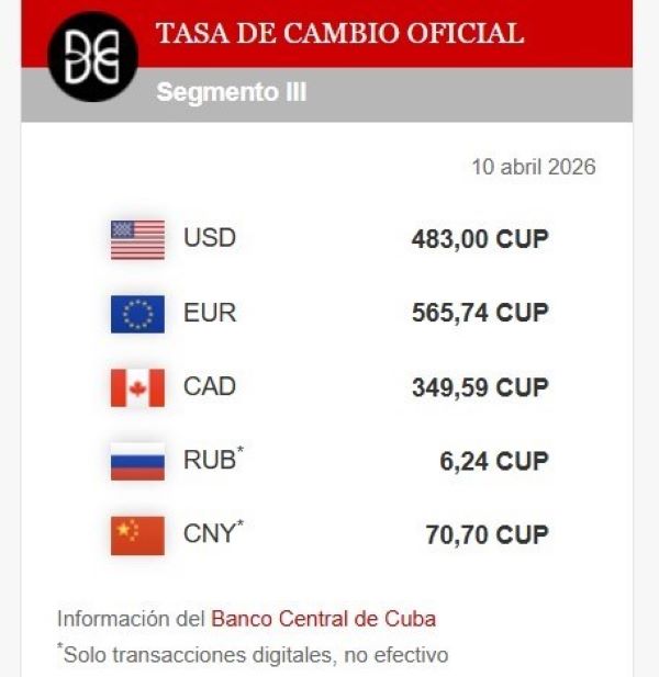 Tasa de cambio oficial del Banco Central de Cuba: 10 de abril de 2026