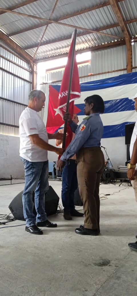 La empresa de tecnologías Industriales para la construcción, Ticons, recibió esta mañana la bandera Colectivo Vanguardia Nacional.. Al acto asistió el Secretario General de la Central de Trabajadores de Cuba en la capital, Misael Rodríguez Llanes.
