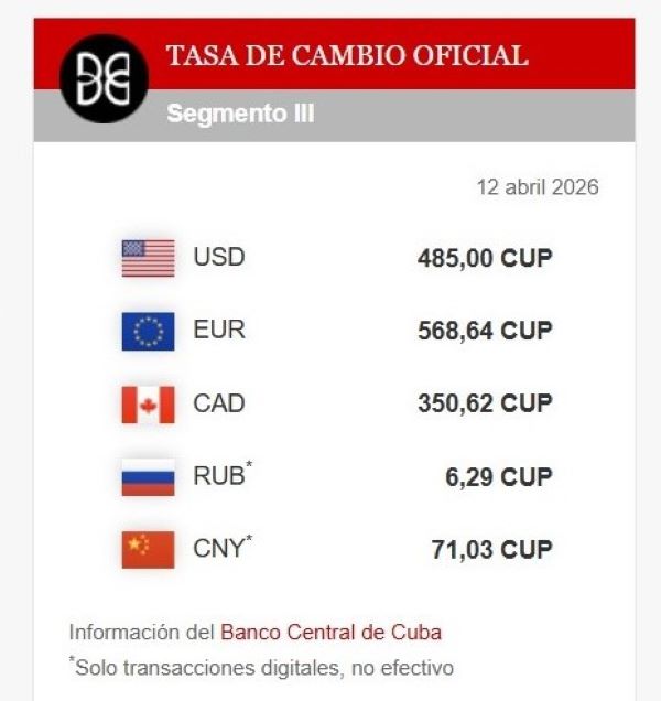 Tasa de cambio oficial del Banco Central de Cuba: 12 de abril de 2026