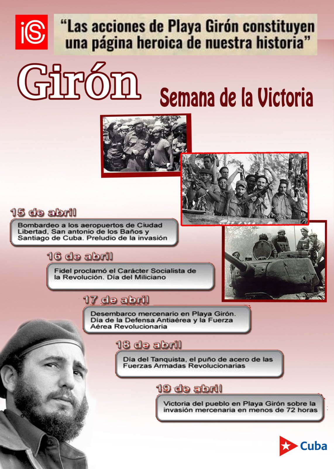 Y esto se hizo realidad en los días siguientes cuando la invasión mercenaria que desembarcó por Playa Girón  el 17 de abril  fue destruida en menos de 72 horas.