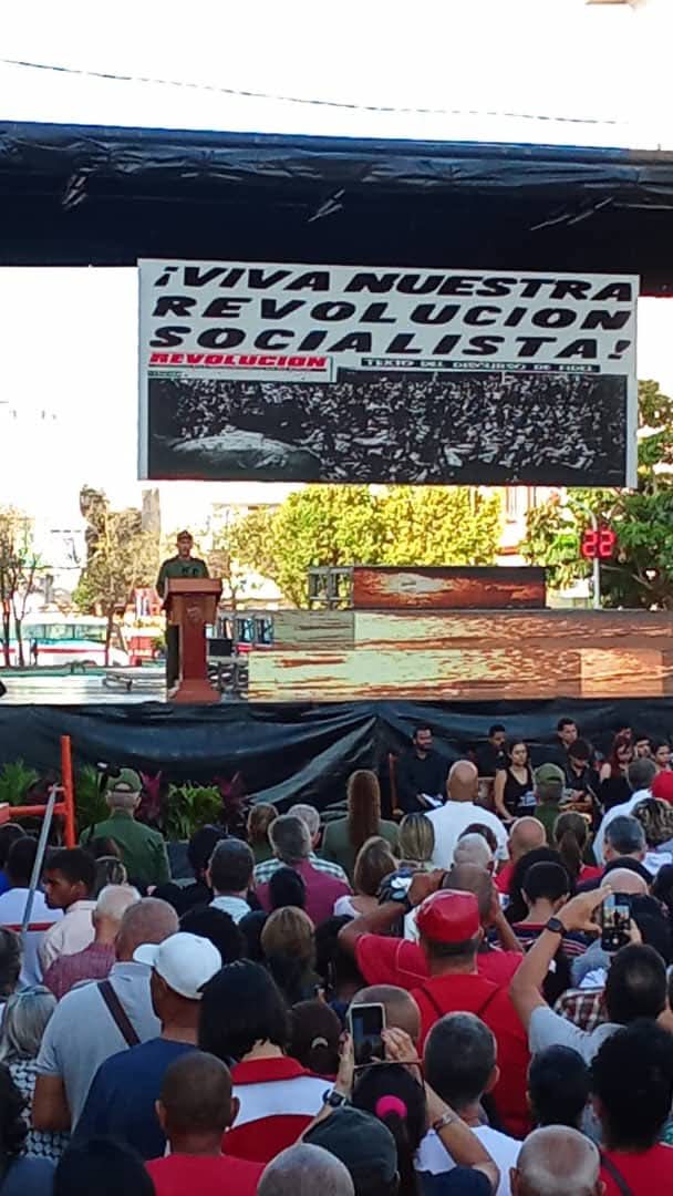 Miles de cubanos se congregaron en la céntrica esquina de 23 y 12, en el Vedado habanero, para conmemorar el aniversario 65 de la proclamación del carácter socialista de la Revolución, reafirmar su sello antimperialista en medio de reiteradas amenazas de agresión externa y manifestar la determinación de defender el proyecto revolucionario.