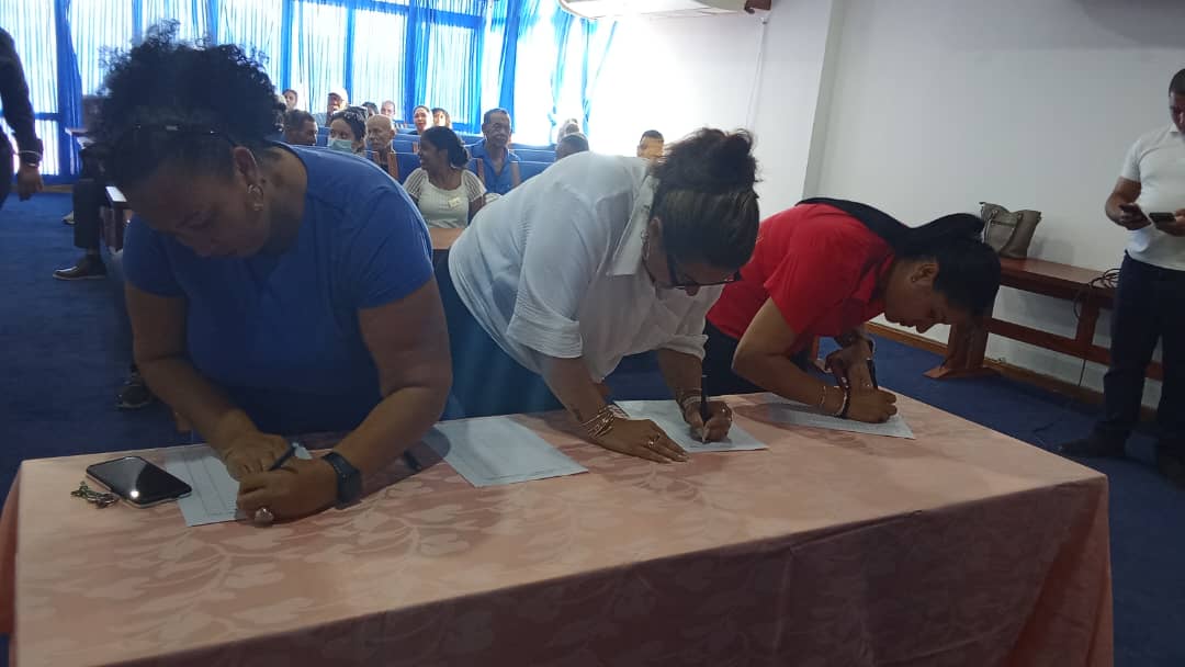 Con un sencillo acto y matutino los trabajadores de la sucursal Villa Panamericana, perteneciente a la cadena hotelera Isla Azul, en La Habana del Este, respondieron hoy a la convocatoria del movimiento "Mi firma por la Patria" en favor de la paz, contra la guerra y contra el bloqueo, que por estos días se desarrolla en la nación antillana.